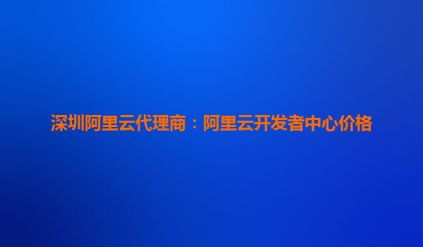 深圳阿里云代理商:阿里云开发者中心价格解析与优势