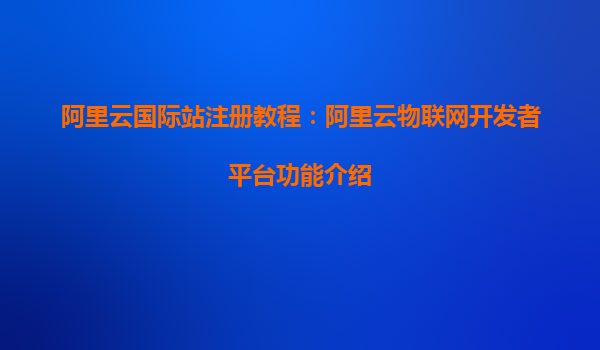 阿里云国际站注册教程:阿里云物联网开发者平台功能介绍