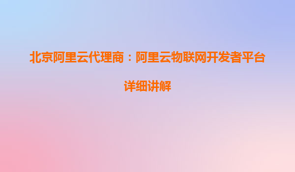 北京阿里云代理商:阿里云物联网开发者平台详细讲解
