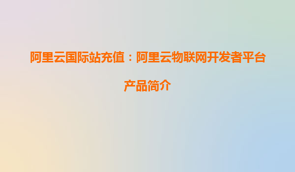 阿里云国际站充值:阿里云物联网开发者平台产品简介