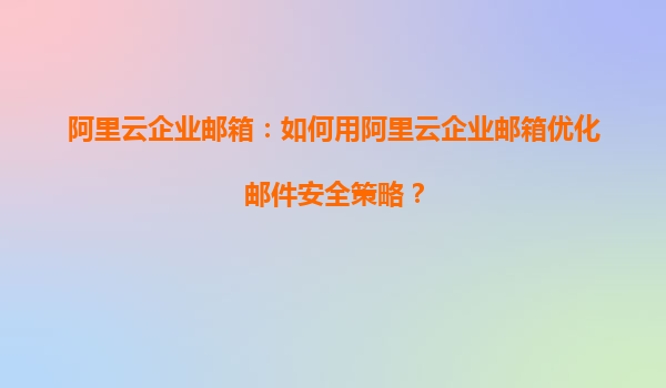 阿里云企业邮箱:如何用阿里云企业邮箱优化邮件安全策略