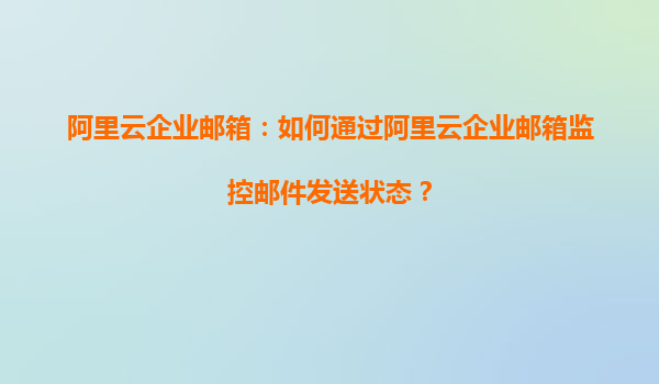 阿里云企业邮箱:如何通过阿里云企业邮箱监控邮件发送状态?