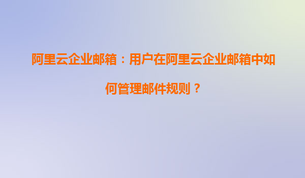 阿里云企业邮箱:用户在阿里云企业邮箱中如何管理邮件规则?