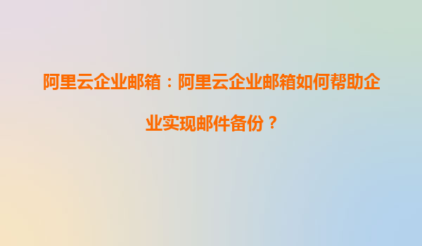 阿里云企业邮箱如何帮助企业实现邮件备份?