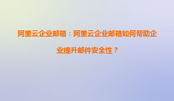 阿里云企业邮箱如何帮助企业提升邮件安全性?