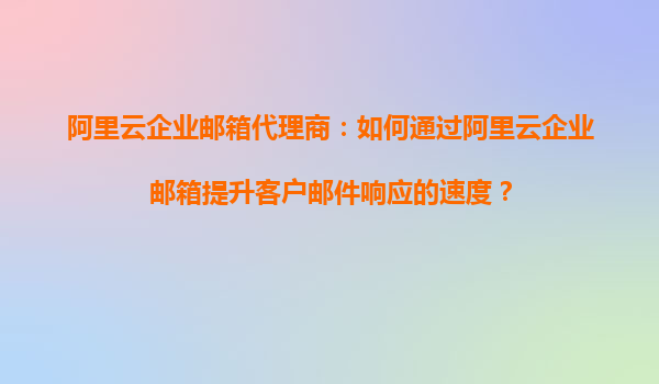 阿里云企业邮箱代理商:如何通过阿里云企业邮箱提升客户邮件响应的速度?