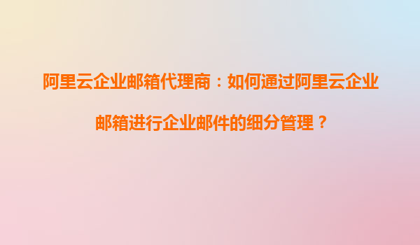 阿里云企业邮箱代理商:如何通过阿里云企业邮箱进行企业邮件的细分管理