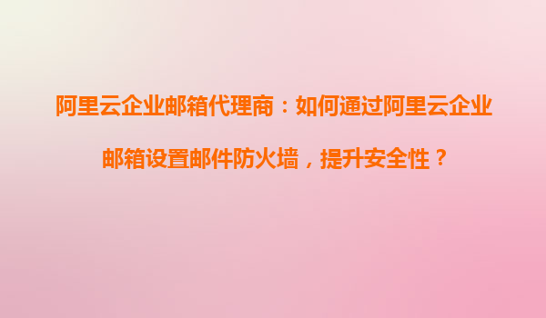 阿里云企业邮箱代理商:如何通过阿里云企业邮箱设置邮件防火墙,提升安全性?
