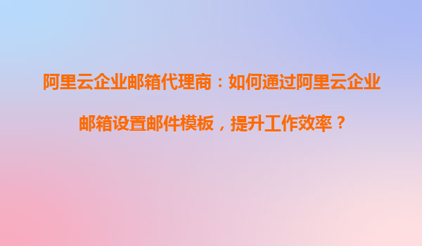 阿里云企业邮箱代理商:如何通过阿里云企业邮箱设置邮件模板,提升工作效率?