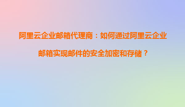 阿里云企业邮箱代理商:如何通过阿里云企业邮箱实现邮件的安全加密和存储?