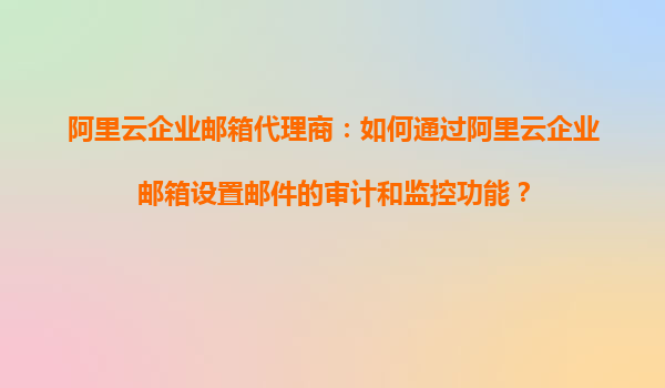 阿里云企业邮箱代理商:如何通过阿里云企业邮箱设置邮件的审计和监控功能?