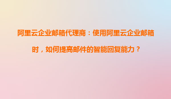 阿里云企业邮箱代理商:如何提高企业邮件的智能回复能力