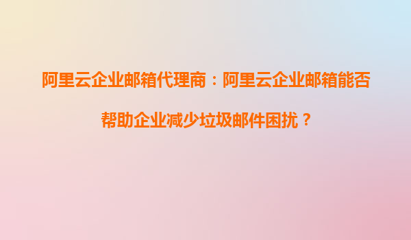 阿里云企业邮箱代理商:阿里云企业邮箱能否帮助企业减少垃圾邮件困扰?