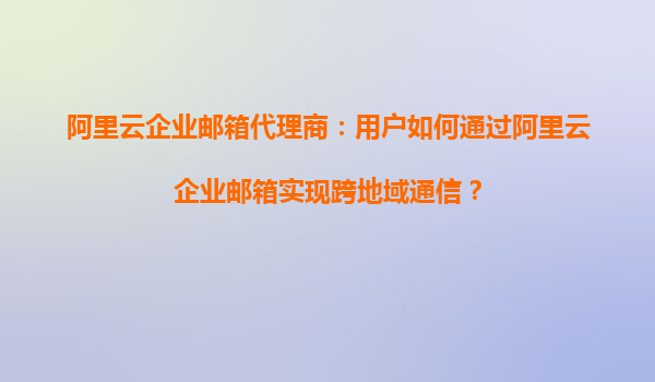 阿里云企业邮箱代理商:用户如何通过阿里云企业邮箱实现跨地域通信?