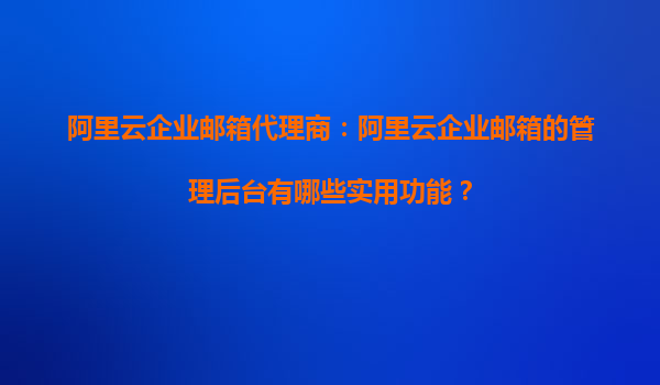 阿里云企业邮箱代理商:阿里云企业邮箱的管理后台有哪些实用功能?