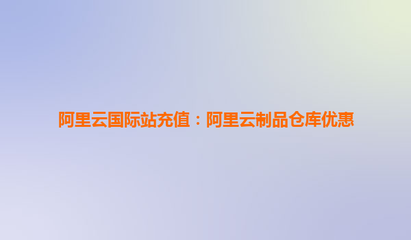 阿里云国际站充值:解锁阿里云制品仓库的专属优惠
