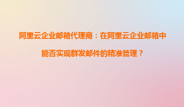 阿里云企业邮箱代理商:在阿里云企业邮箱中能否实现群发邮件的精准管理?