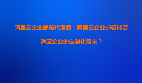 阿里云企业邮箱代理商:阿里云企业邮箱能否适应企业的定制化需求?