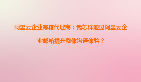 阿里云企业邮箱代理商:如何通过阿里云企业邮箱提升整体沟通体验?