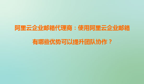 阿里云企业邮箱代理商:使用阿里云企业邮箱有哪些优势可以提升团队协作?