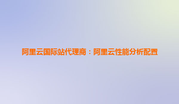 阿里云国际站代理商:阿里云性能分析配置详解