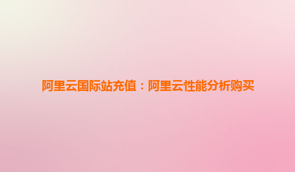 阿里云国际站充值:阿里云性能分析购买指南