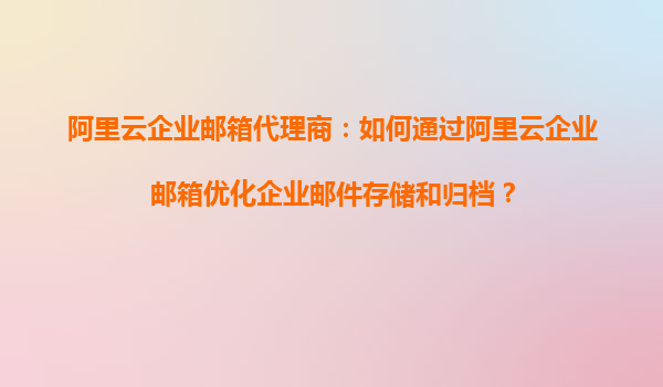 阿里云企业邮箱代理商:如何通过阿里云企业邮箱优化企业邮件存储和归档?