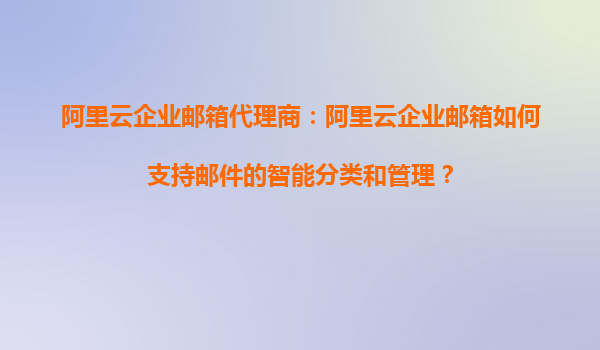 阿里云企业邮箱代理商:阿里云企业邮箱如何支持邮件的智能分类和管理?