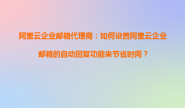 阿里云企业邮箱代理商:如何设置阿里云企业邮箱的自动回复功能来节省时间?