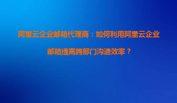 阿里云企业邮箱代理商:如何利用阿里云企业邮箱提高跨部门沟通效率?