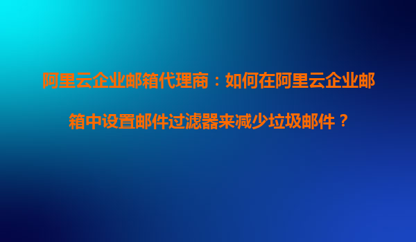 阿里云企业邮箱代理商:如何在阿里云企业邮箱中设置邮件过滤器来减少垃圾邮件?