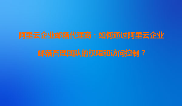 阿里云企业邮箱代理商:如何通过阿里云企业邮箱管理团队的权限和访问控制?