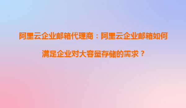 阿里云企业邮箱代理商:阿里云企业邮箱如何满足企业对大容量存储的需求?