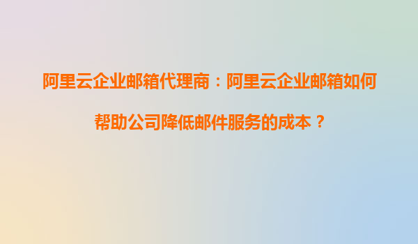 阿里云企业邮箱代理商:阿里云企业邮箱如何帮助公司降低邮件服务的成本?