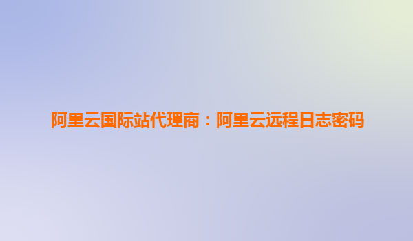阿里云国际站代理商:阿里云远程日志密码的高效管理