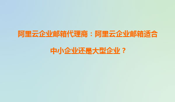 阿里云企业邮箱代理商:阿里云企业邮箱适合中小企业还是大型企业?