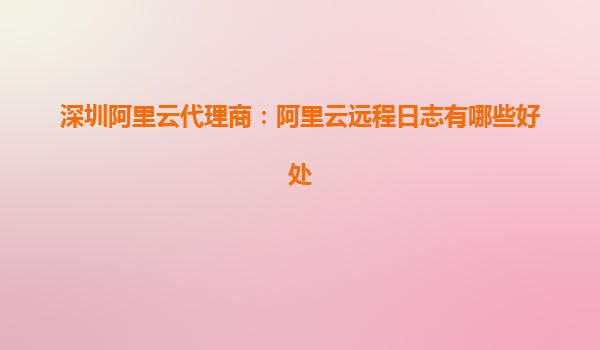 深圳阿里云代理商:阿里云远程日志有哪些好处