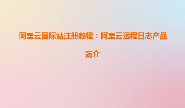 阿里云国际站注册教程:阿里云远程日志产品简介