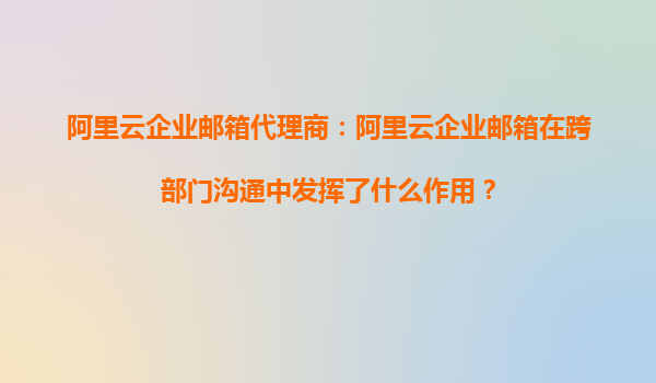 阿里云企业邮箱代理商:阿里云企业邮箱在跨部门沟通中发挥了什么作用?