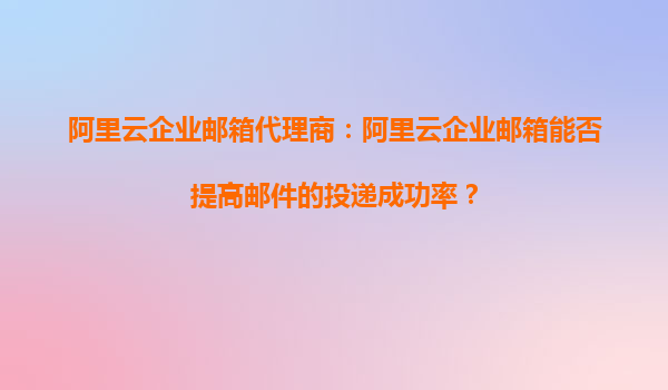 阿里云企业邮箱代理商:阿里云企业邮箱能否提高邮件的投递成功率?
