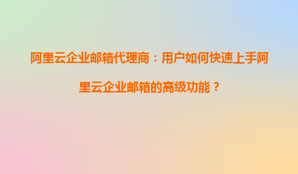 阿里云企业邮箱代理商:用户如何快速上手阿里云企业邮箱的高级功能?