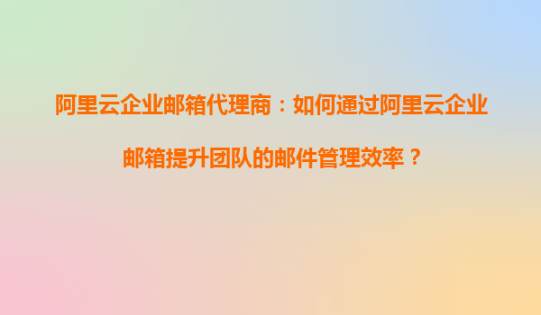 阿里云企业邮箱代理商:如何通过阿里云企业邮箱提升团队的邮件管理效率?