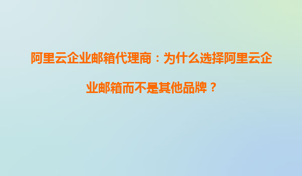 阿里云企业邮箱代理商:为什么选择阿里云企业邮箱而不是其他品牌?