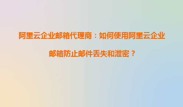 阿里云企业邮箱代理商:如何使用阿里云企业邮箱防止邮件丢失和泄密?
