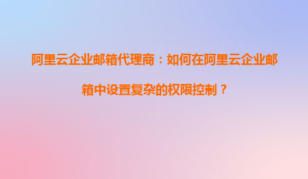 阿里云企业邮箱代理商:如何在阿里云企业邮箱中设置复杂的权限控制?