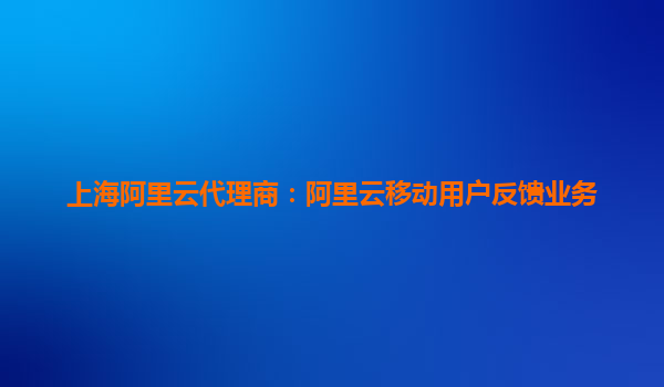 作为阿里云的本地合作伙伴,上海阿里云代理商在移动用户反馈业务中扮演着重要角色: