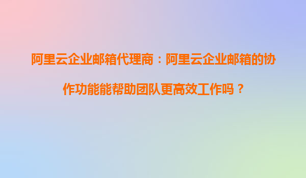 阿里云企业邮箱代理商:阿里云企业邮箱的协作功能能帮助团队更高效工作吗?