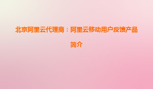 北京阿里云代理商:阿里云移动用户反馈产品简介