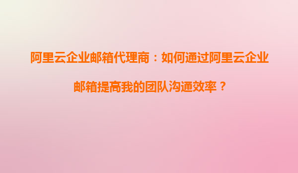 阿里云企业邮箱代理商:如何通过阿里云企业邮箱提升团队沟通效率?