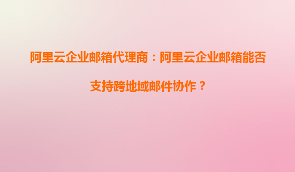 阿里云企业邮箱:高效安全的跨地域邮件协作解决方案